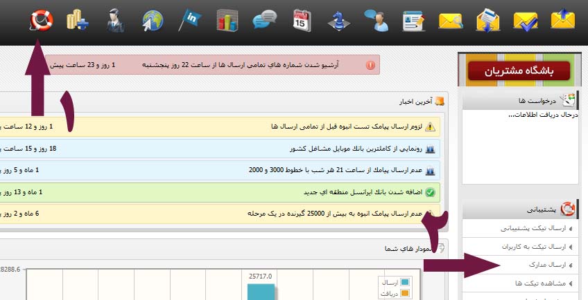 تمام کاربران و نمایندگان پس از ثبت نام و ورود به سامانه می توانند با مراجعه به بخش پشتیبانی و ارسال تیکت ، سوالات خود را مطرح نموده